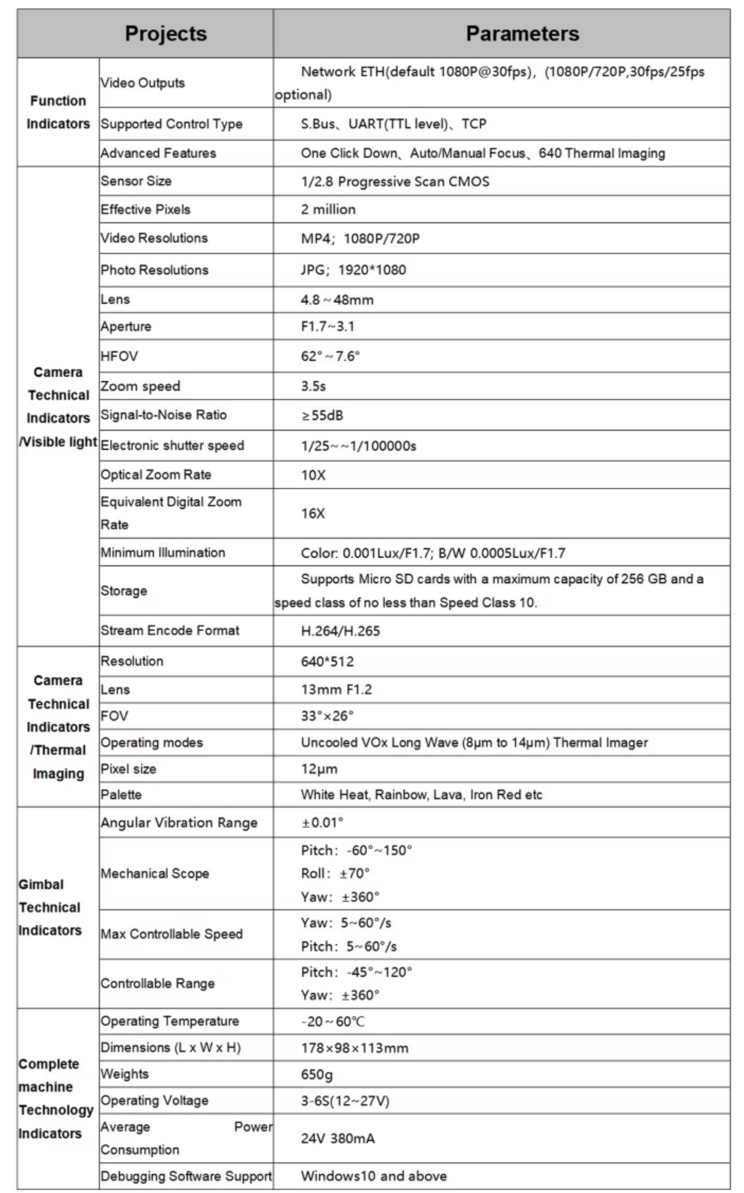 ·Visible light support 10x optical zoom, using 1/2.8 CMOS sensor, effective pixels 2 million;