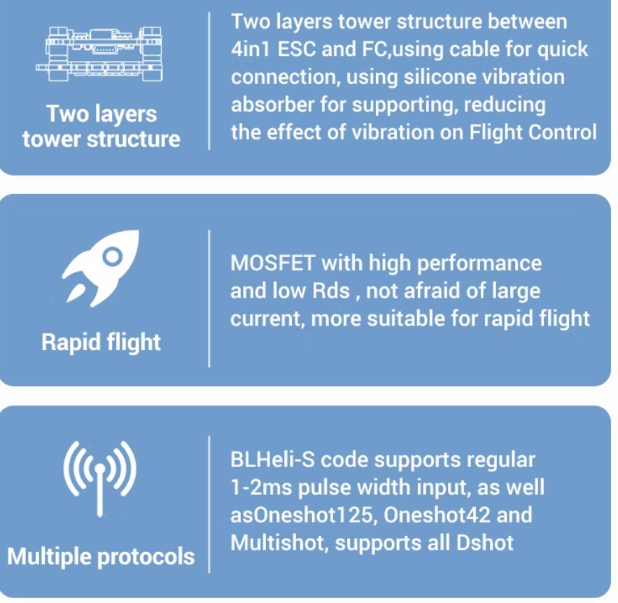 F7 4-in-1 Flight Stack 55A Plug-in Version F7 Flight Controller FC&ESC Stack 3-6s
