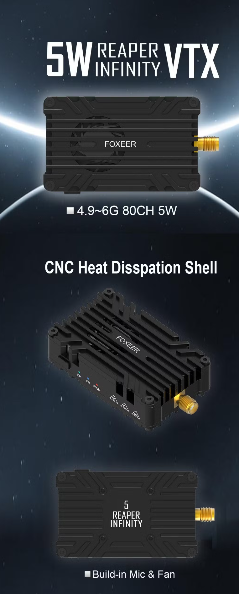 Radiomaster Foxeer 4.9g~6g Reaper Infinity V2 5W 80CH Vtx